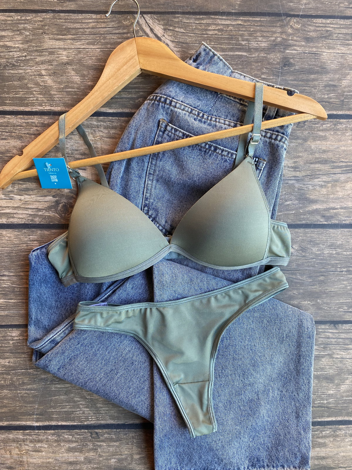 El corpiño es triangulito taza soft, sin aros! Y la bombacha es colaless clásica entera, de microfibra lisa. (DATO: la bombacha viene por talle en conjunto con el talle del corpiño)