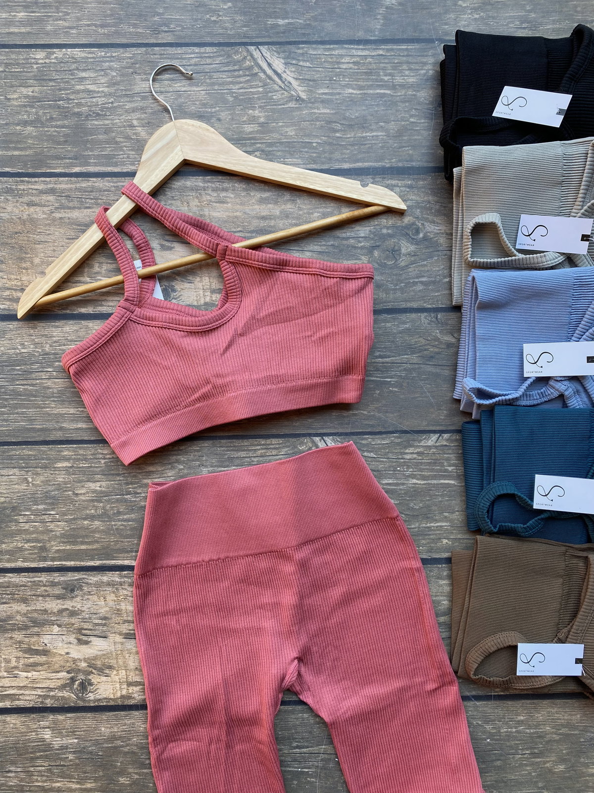 Este conjunto es ideal para moverte con libertad y estilo. Confeccionado en tela seamless acanalada, suave y elástica de excelente calidad, se adapta al cuerpo sin marcar ni apretar.