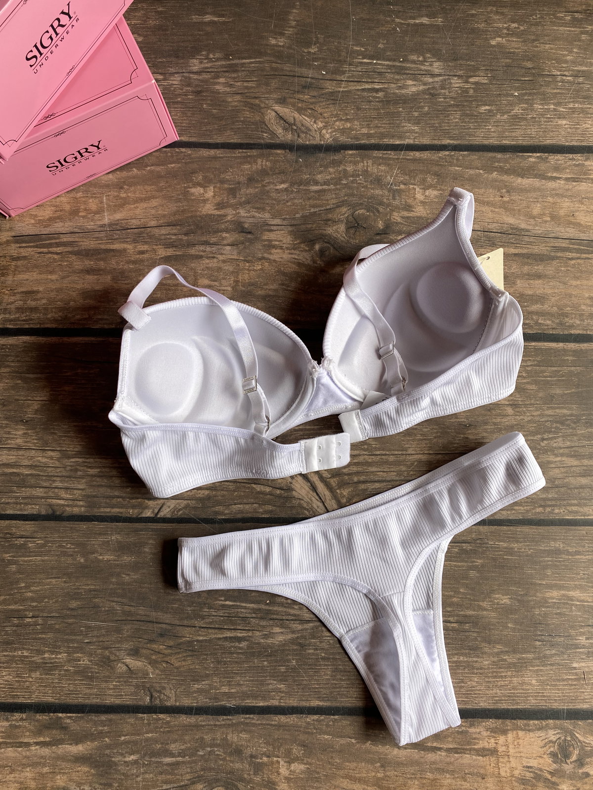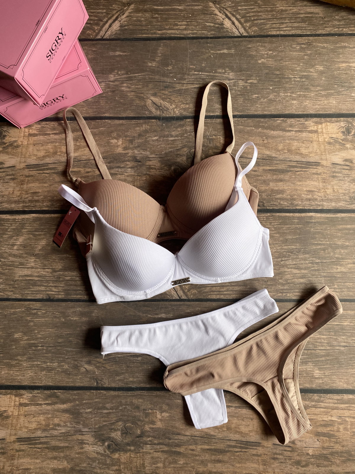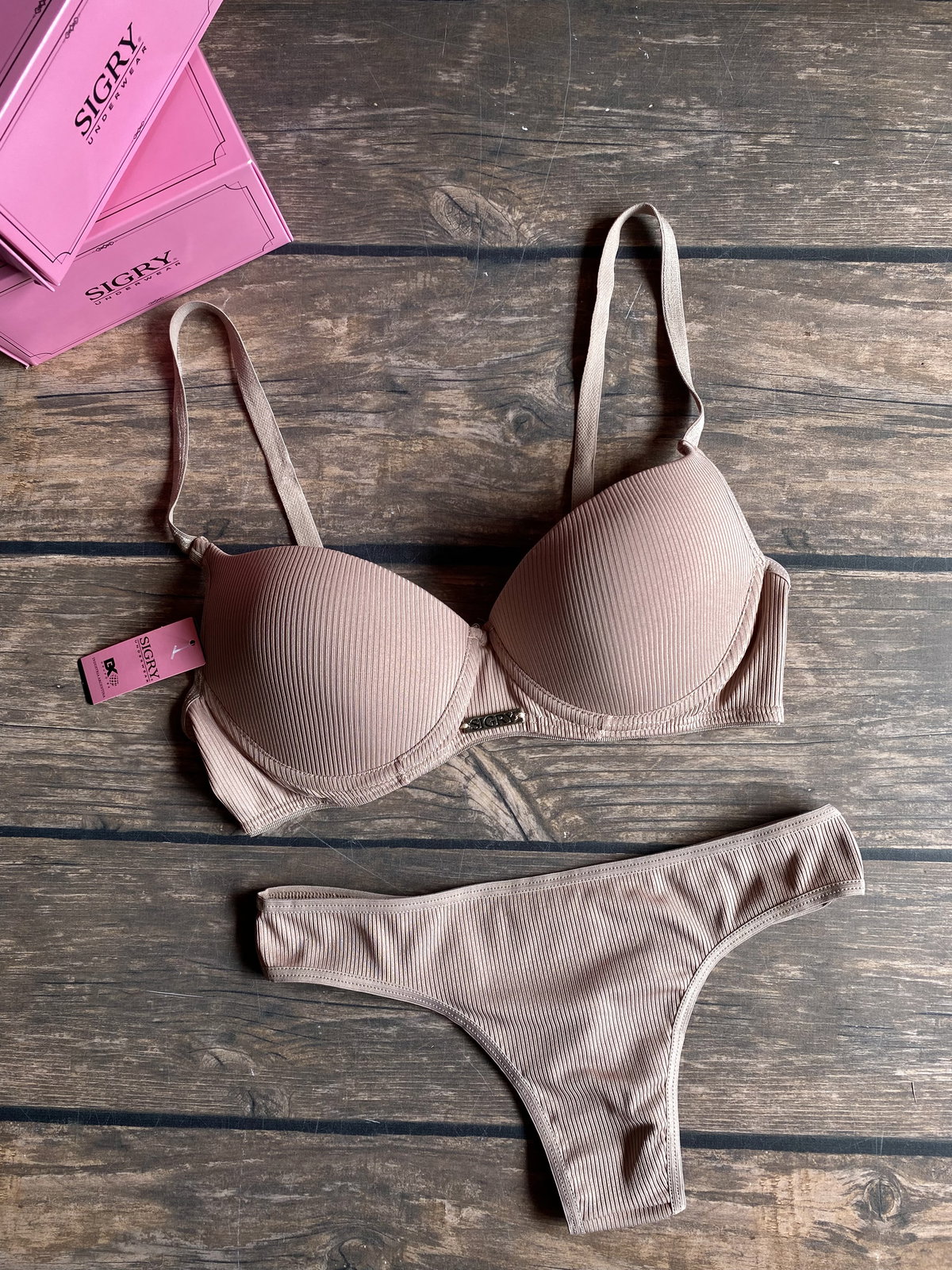 De morley microfibra. Corpiño armado con aro y push up, breteles regulables. La bombacha es colaless clásica entera, talle único