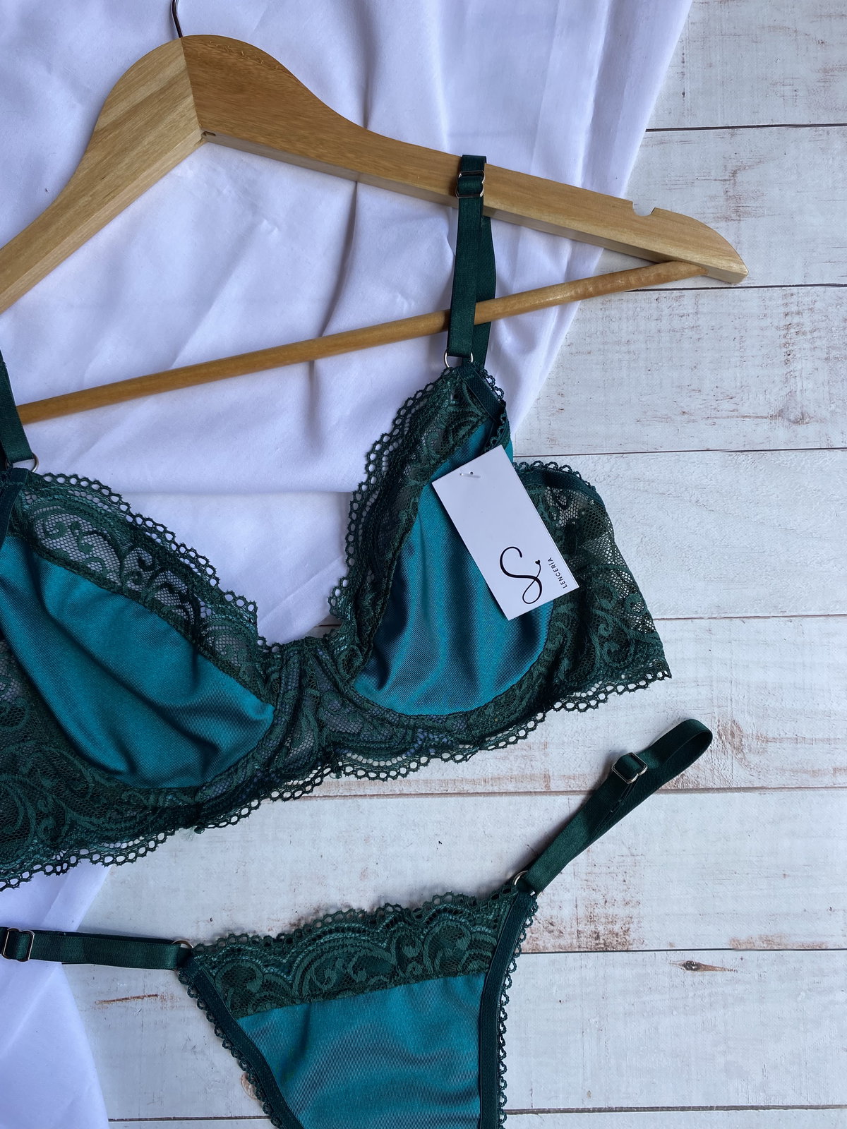 El corpiño tiene aro (sin tazas) y la bombacha es regulable (no son chiquitas, tapa bien 😉 y las tiras regulan bastante de ancho)