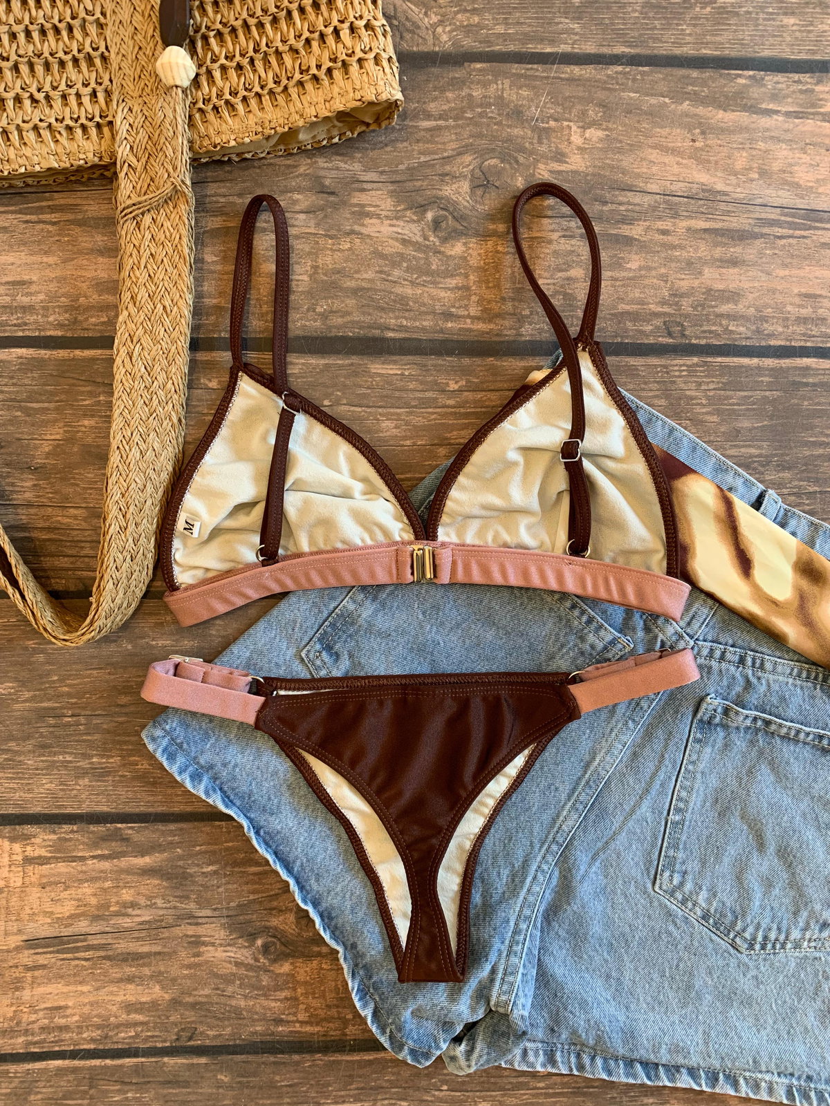 · Triangulo forrado con bajo busto combinado de elástico ancho, que otorga mejor sostén y comodidad 🫶🏼La bombacha es less para regular, con breteles anchos (es ancha de adelante, tranqui que tapa todo 😉)