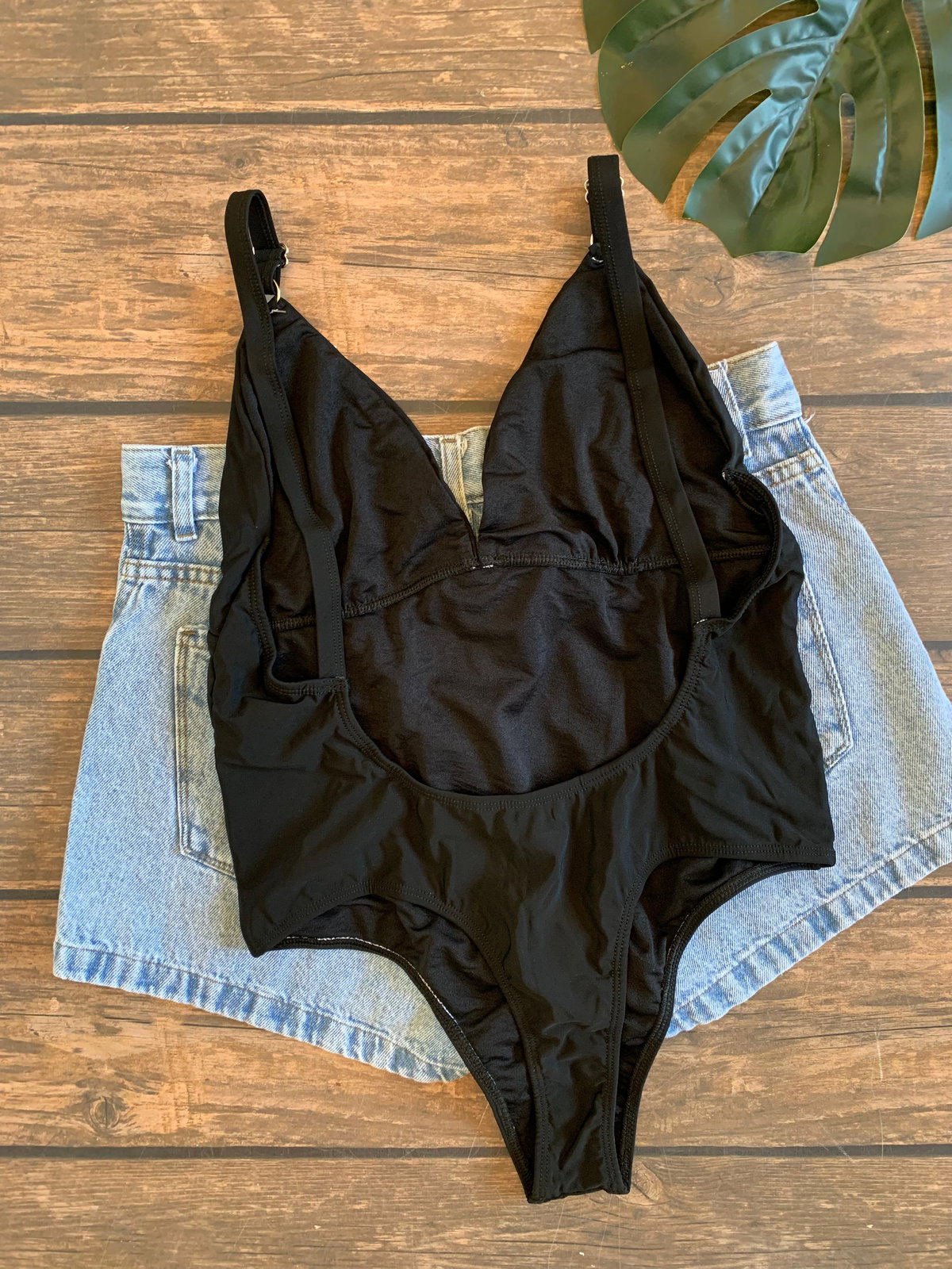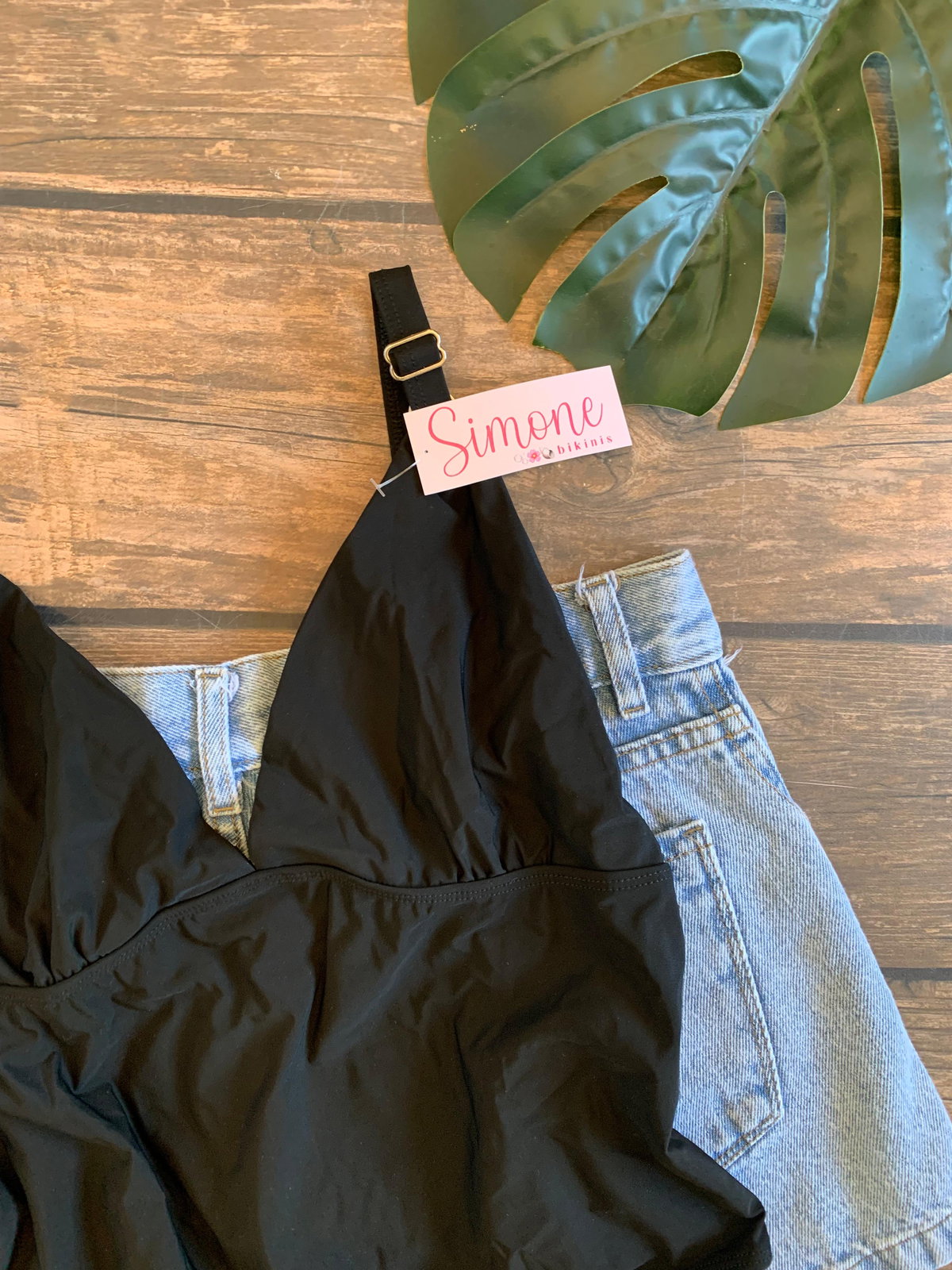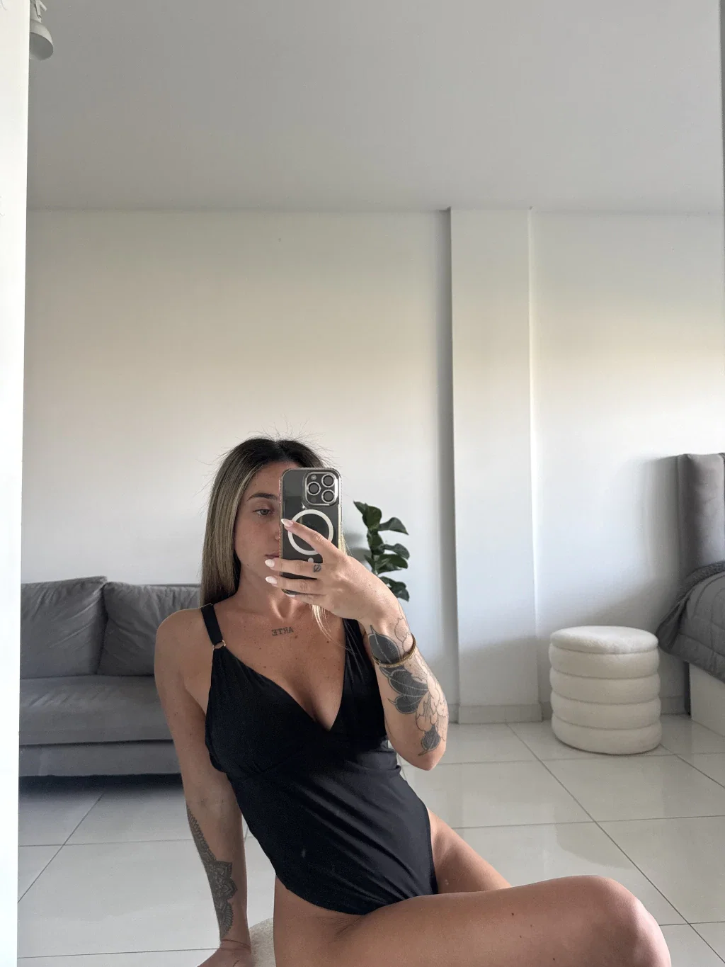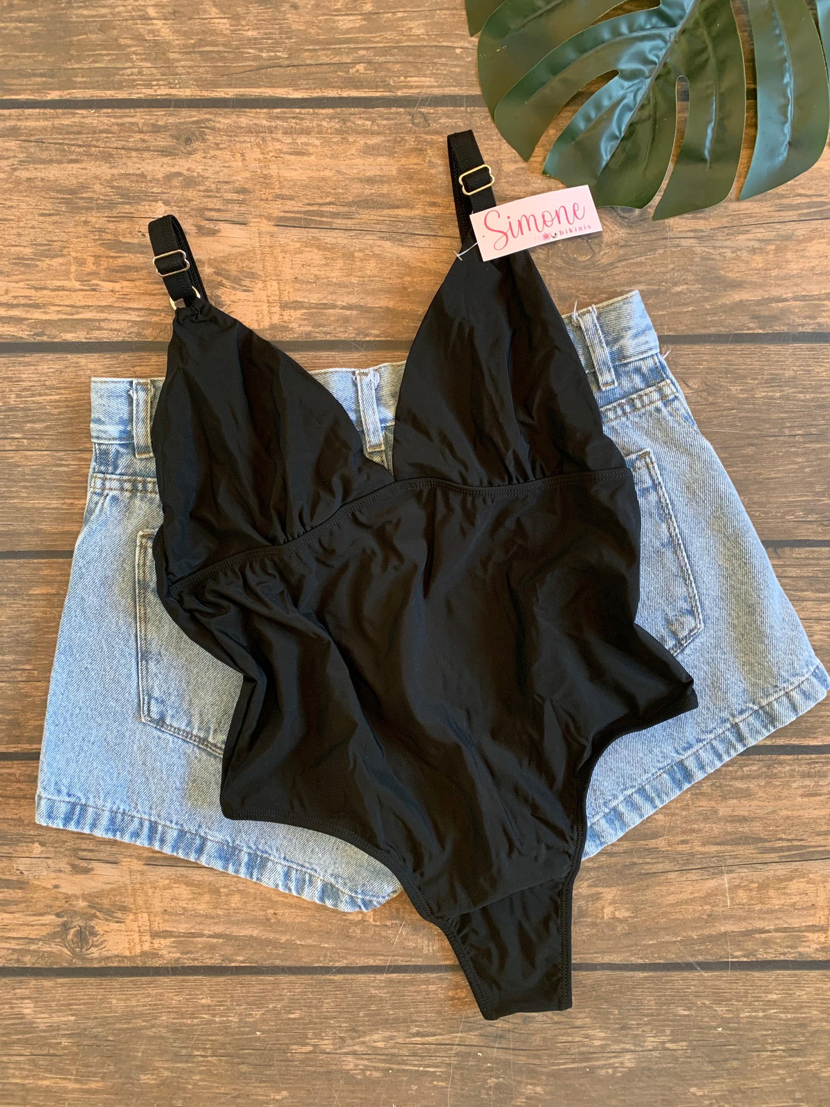De tricot lycra, forrada con breteles anchos regulables. Busto triangulito y bombacha colaless, con espalda abierta