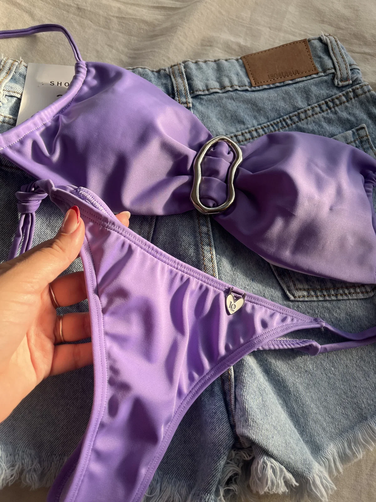 La bombacha es colaless con tiras para atar (no es talle Ășnico, viene por talle segĂșn el talle del corpi)