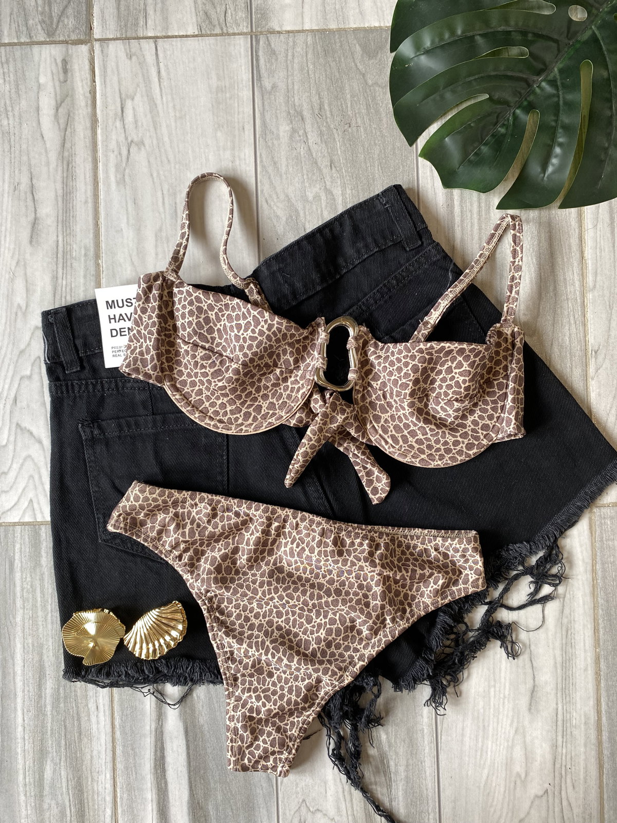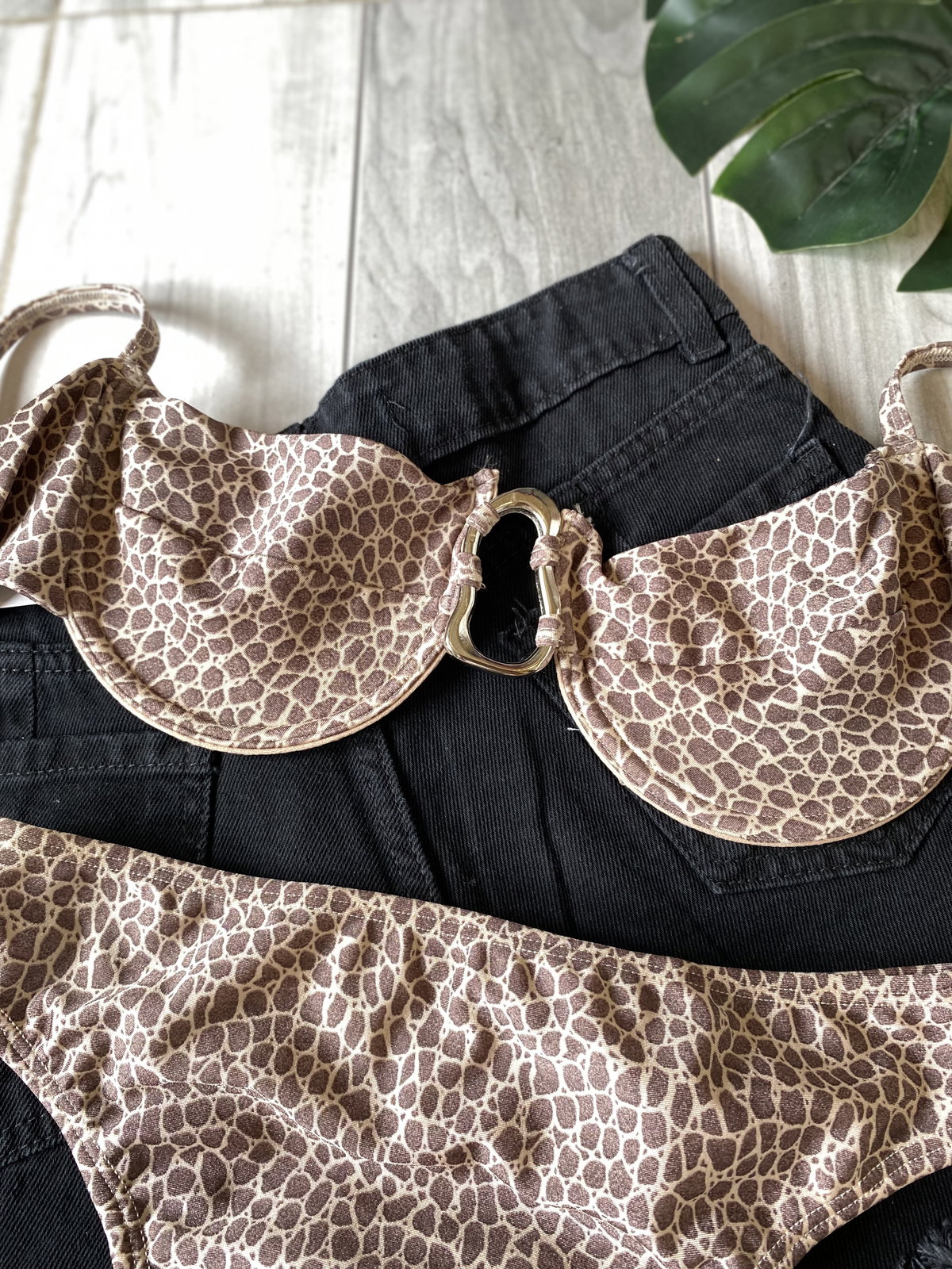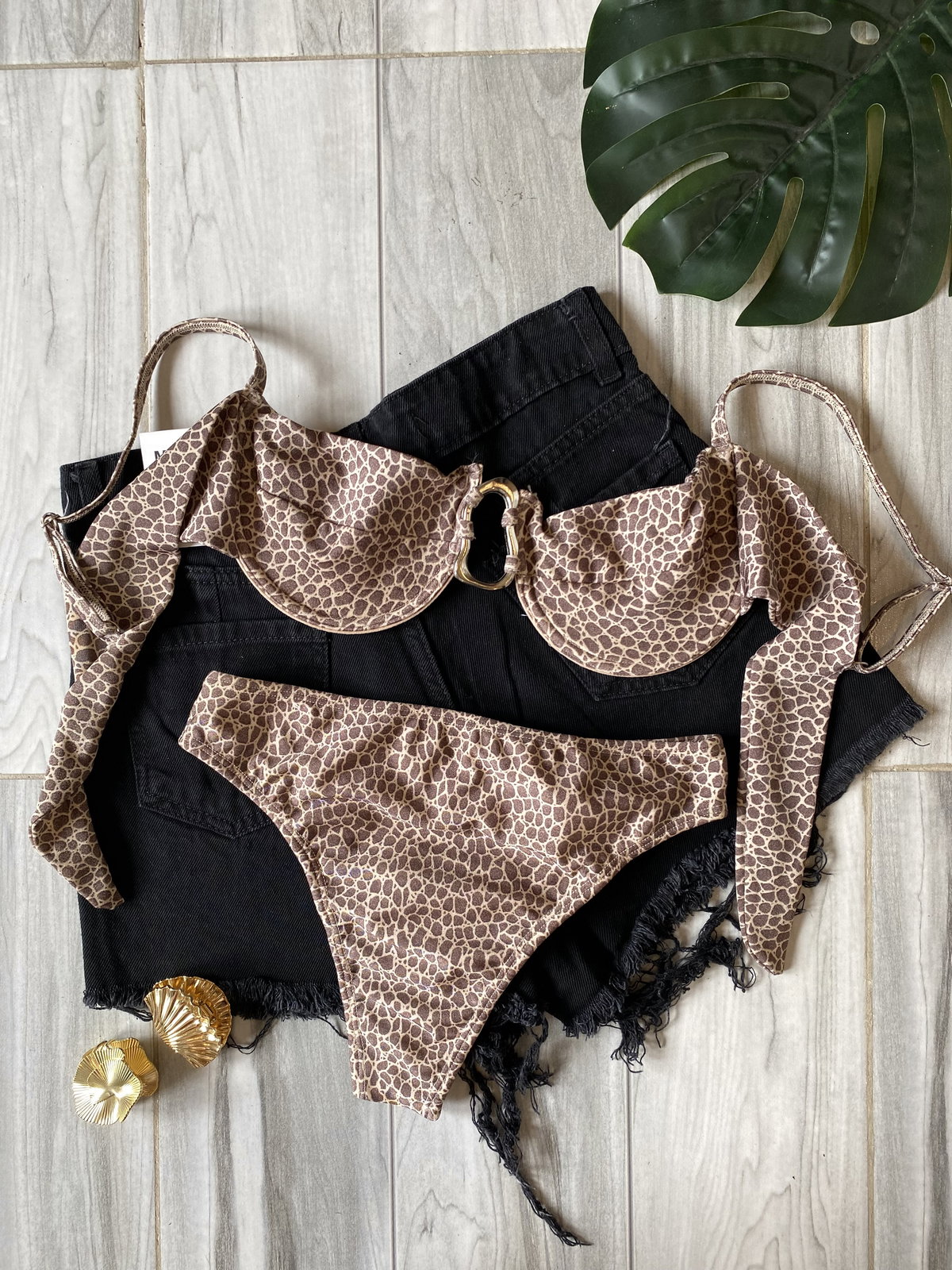El corpiño tiene aro y tazas forradas, breteles regulables y se ata en espalda. Con el detalle de avío irregular de zamak en el centro, MUY tendencia esta tempo