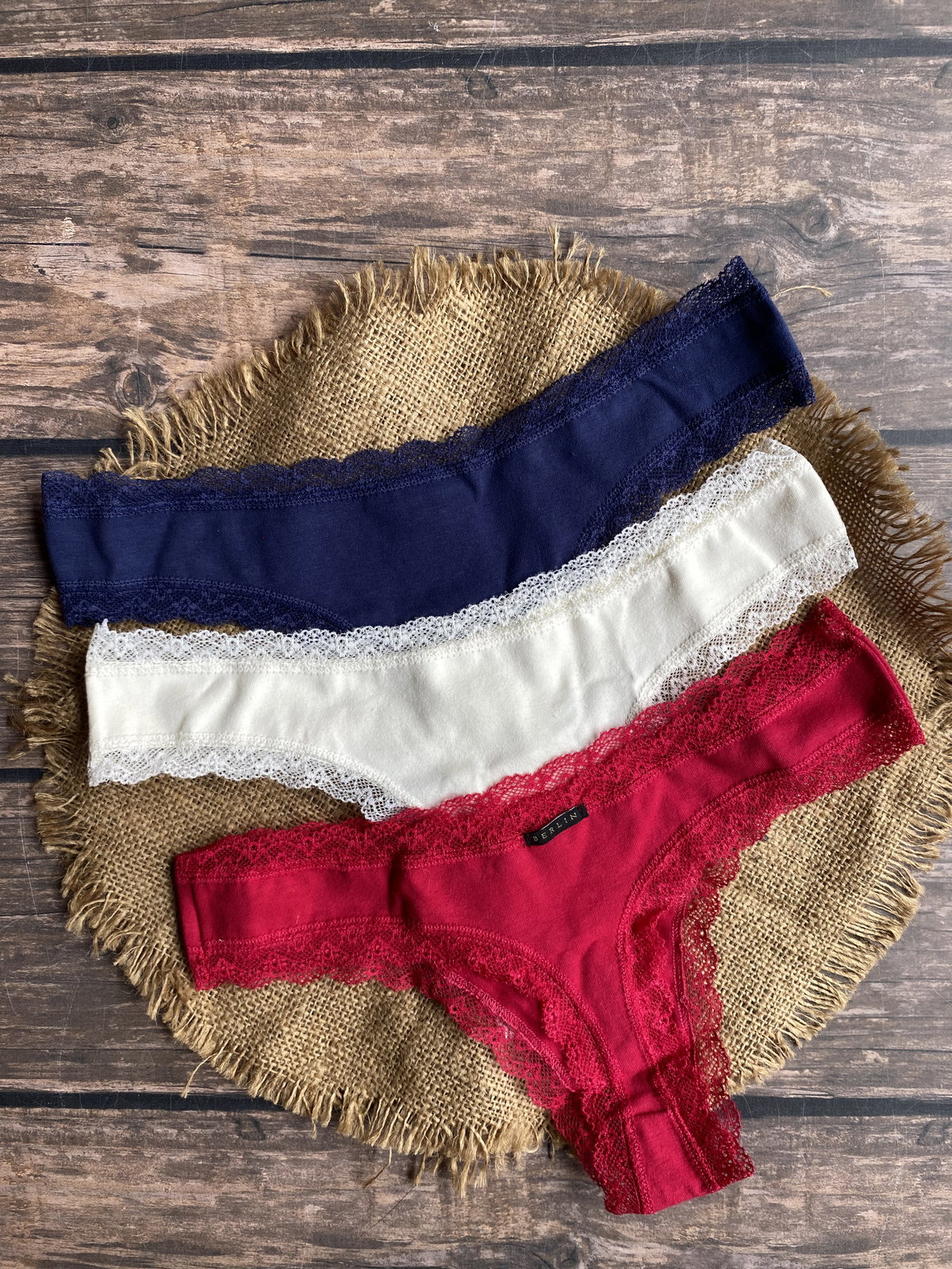 Pack x3 colaless de algodón, con detalles en puntilla
