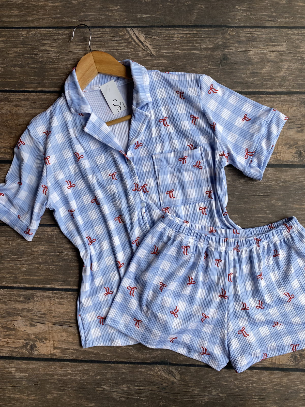Conjunto de dos piezas súper cómodo y femenino. La camisa de botones con bolsillo delantero y el short con cintura elástica hacen de este pijama la opción ideal para descansar fresca y con estilo.