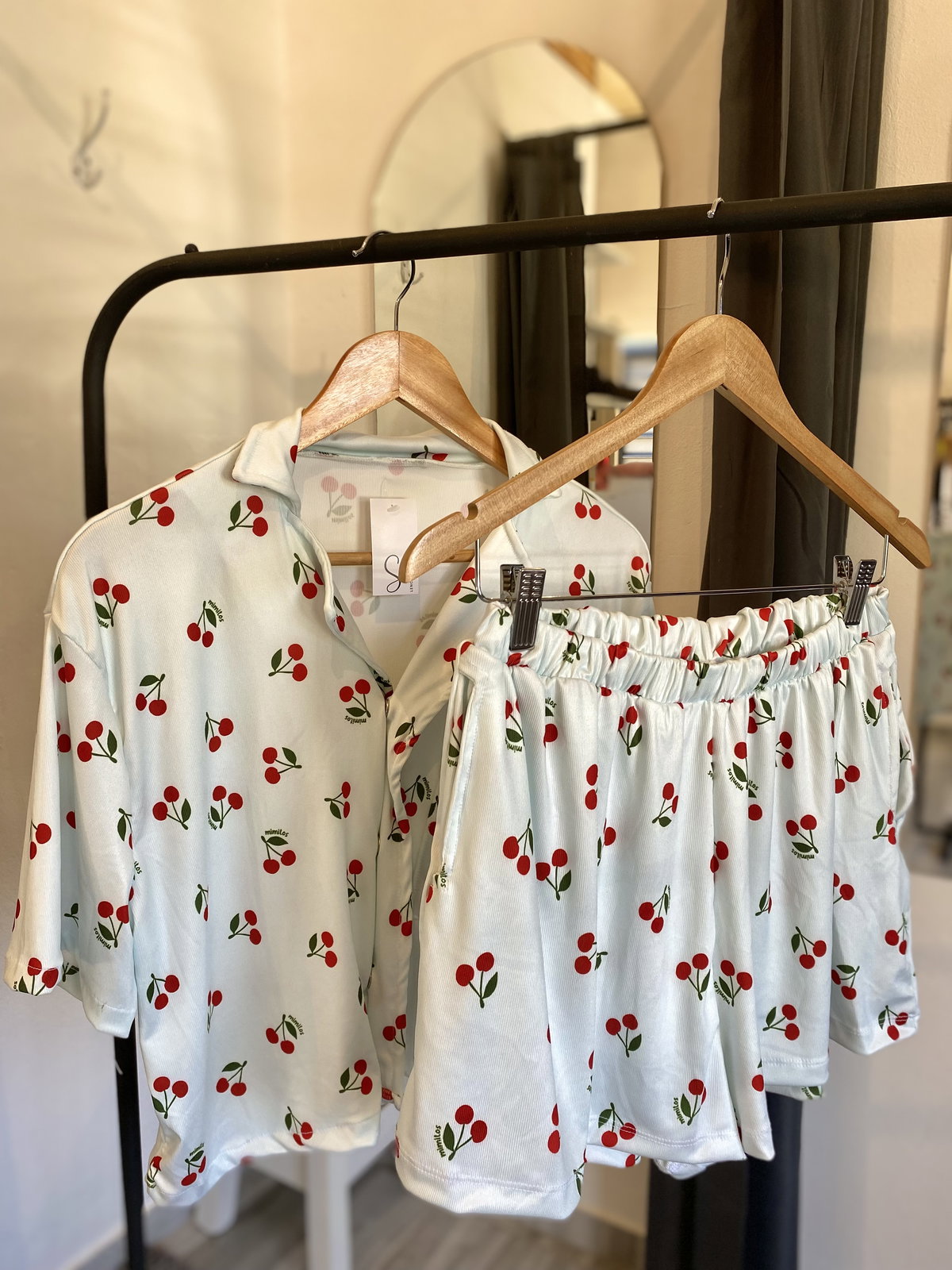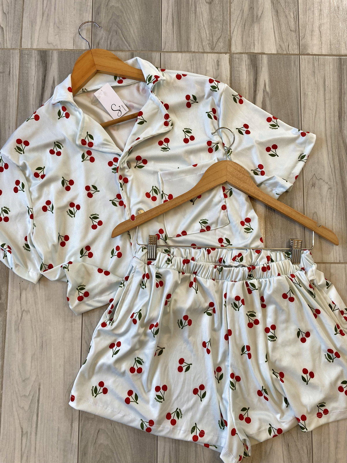 Camisero estampado de tela acanalada, camisa con broches y bolsillo y short sueltito con bolsillos