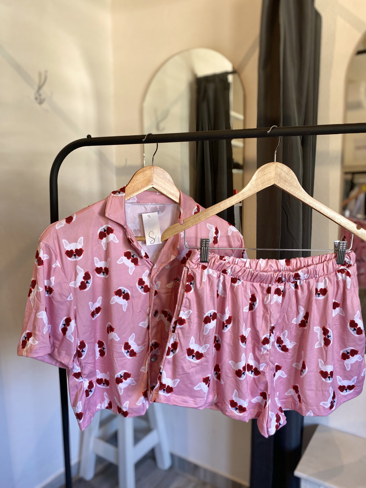 Camisero estampado de tela acanalada, camisa con broches y bolsillo y short sueltito con bolsillos