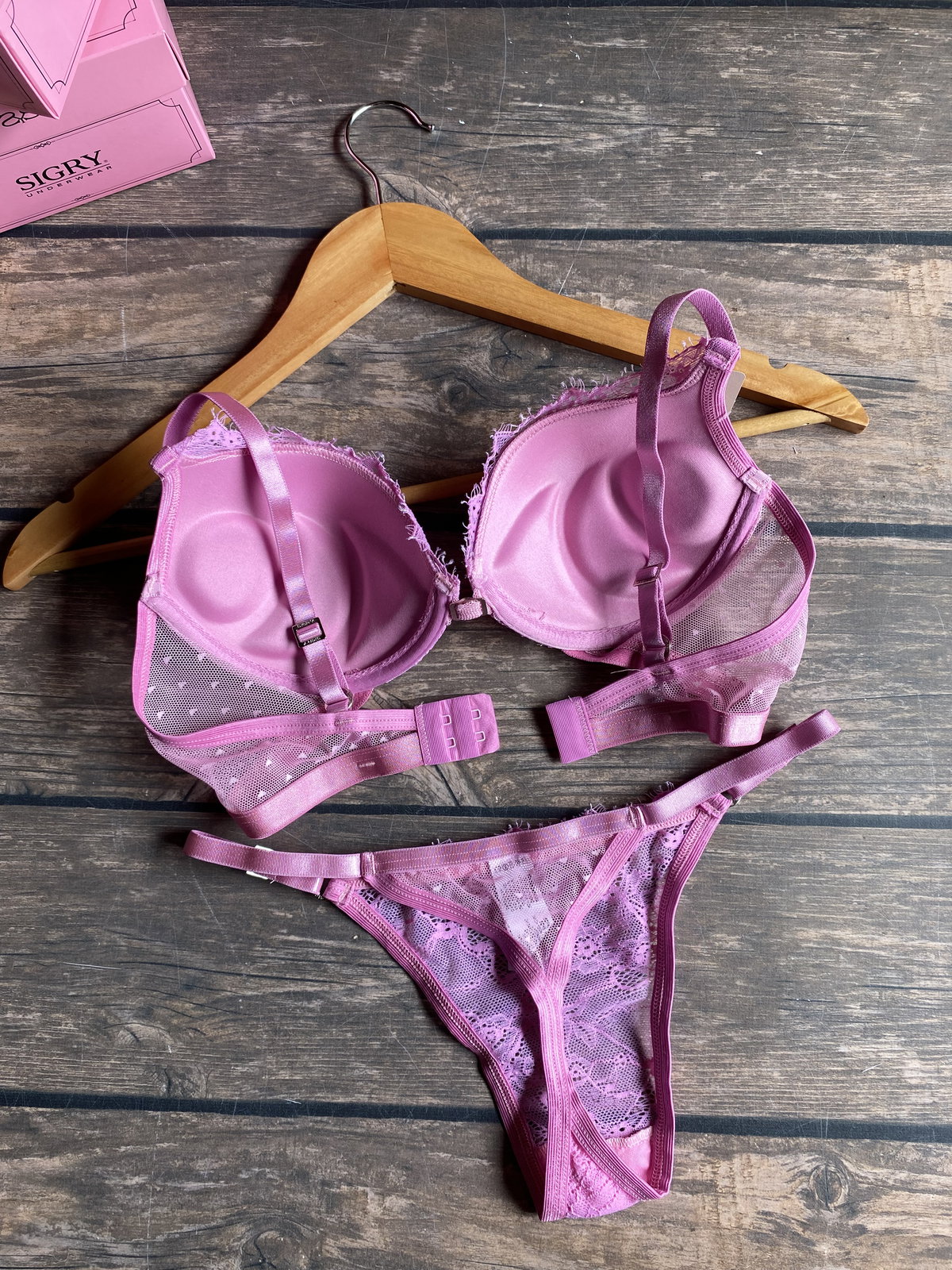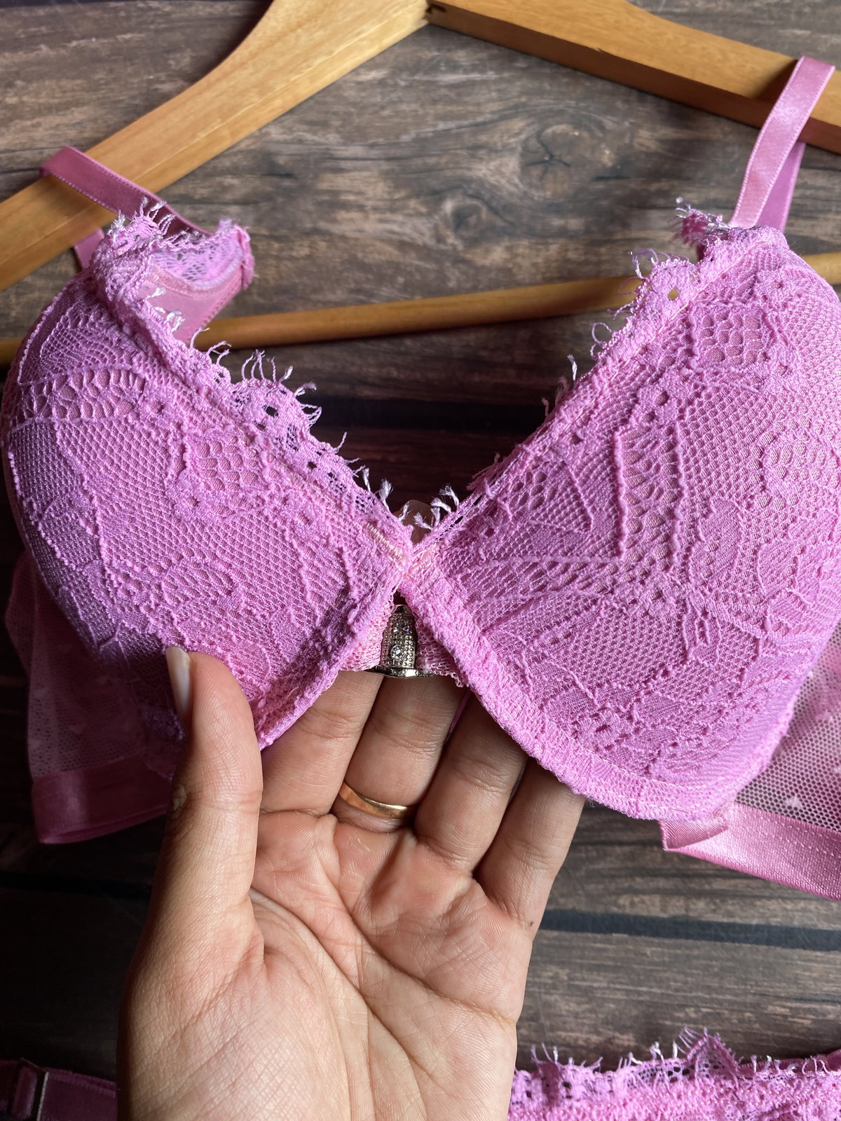 Corpiño con aro y taza soft, de puntilla y microtul a los costados, breteles regulables y detalle en el centro
